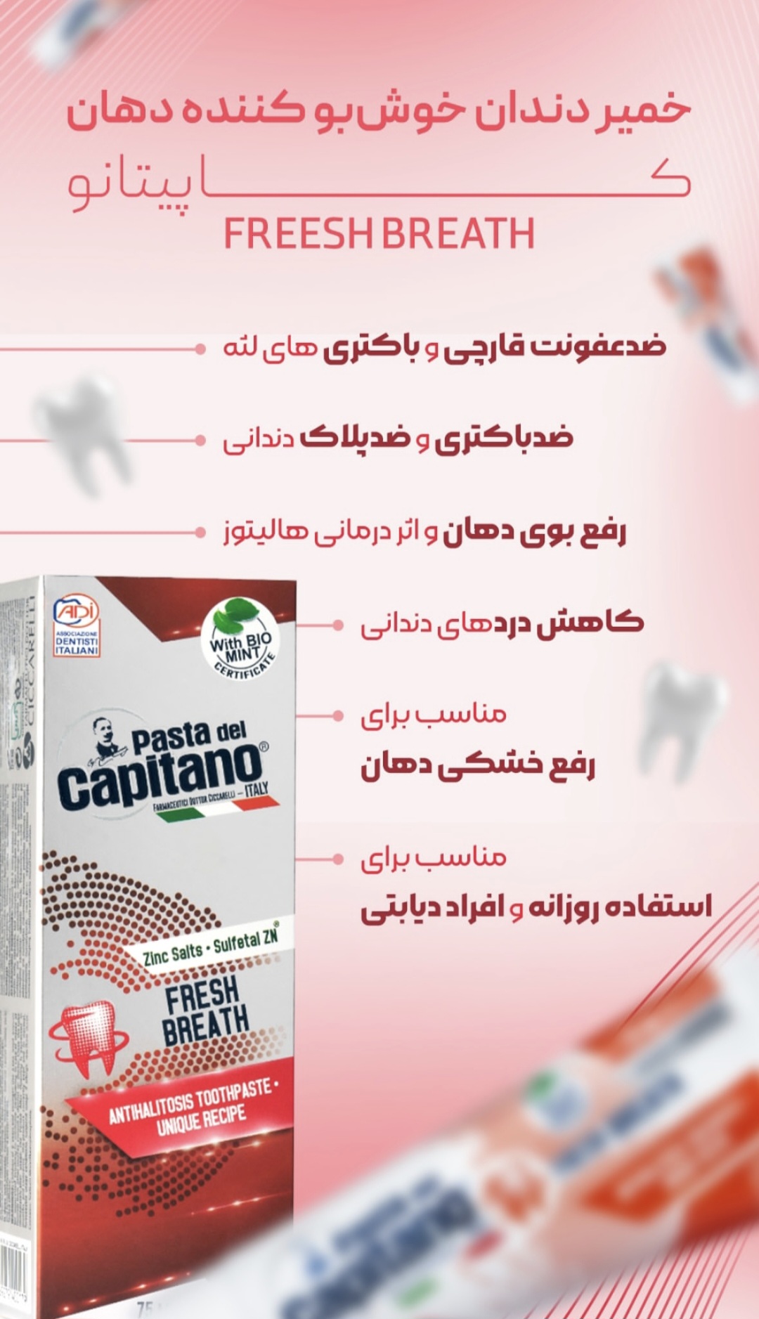 پایان درد و حساسیت دندانهای شما همینجاست. خمیر دندان دندانهای حساس پاستا دل کاپیتانو با فرمولاسیون انحصاری و پیشرفته، سد دفاعی دندانهای شما را در برابر سرما، گرما و شیرینی بازسازی میکند. اگر به دنبال خرید محصولی هستید که علاوه بر تسکین فوری درد، سلامت و استحکام مینای دندان را تضمین کند، این محصول ایتالیایی با تاییدیه کلینیکی، بهترین و امنترین انتخاب برای استفاده روزانه شماست. با یک بار استفاده، لذت خوردن و آشامیدن بدون ترس از تیر کشیدن دندان را دوباره تجربه کنید.
