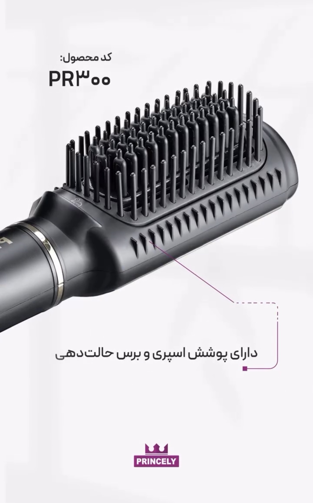 برس حرارتی پرنسلی مدل PR302AT: برس صاف کننده حرفهای با تکنولوژی یونیک و صفحه سرامیکی برای درخشش و حذف وز