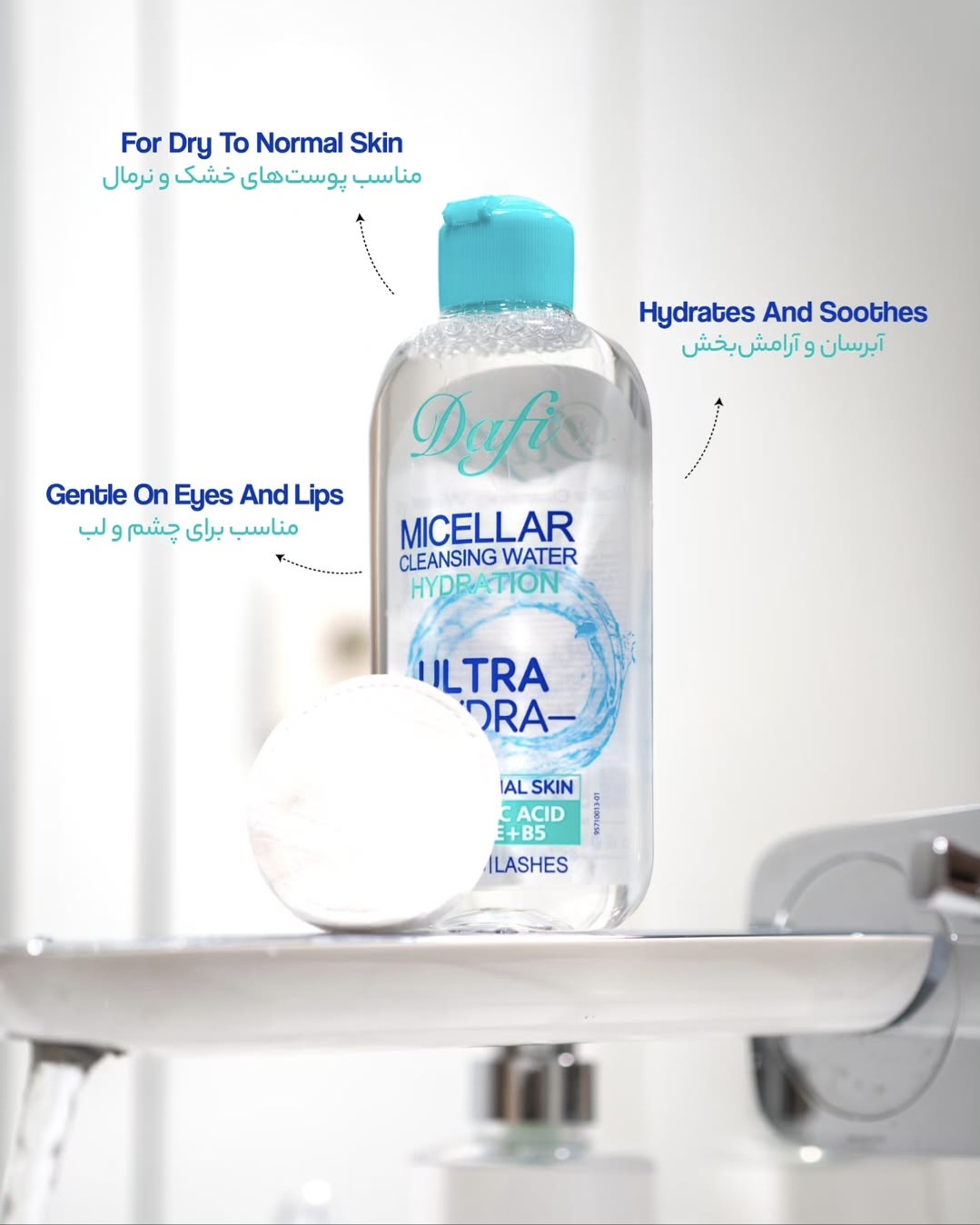 محلول آرایش پاک کن مخصوص پوست های خشک و نرمال دافی، محلولی بسیار قوی و موثر برای رفع آلودگی های صورت می باشد. آبرسانی و افزایش شادابی و شفافیت پوست، پاک کننده عمیق و سریع مواد آرایشی، چربی و آلودگی از داخل تمام منافذ پوست نیز از ویژگی های منحصر به فرد این محصول است.