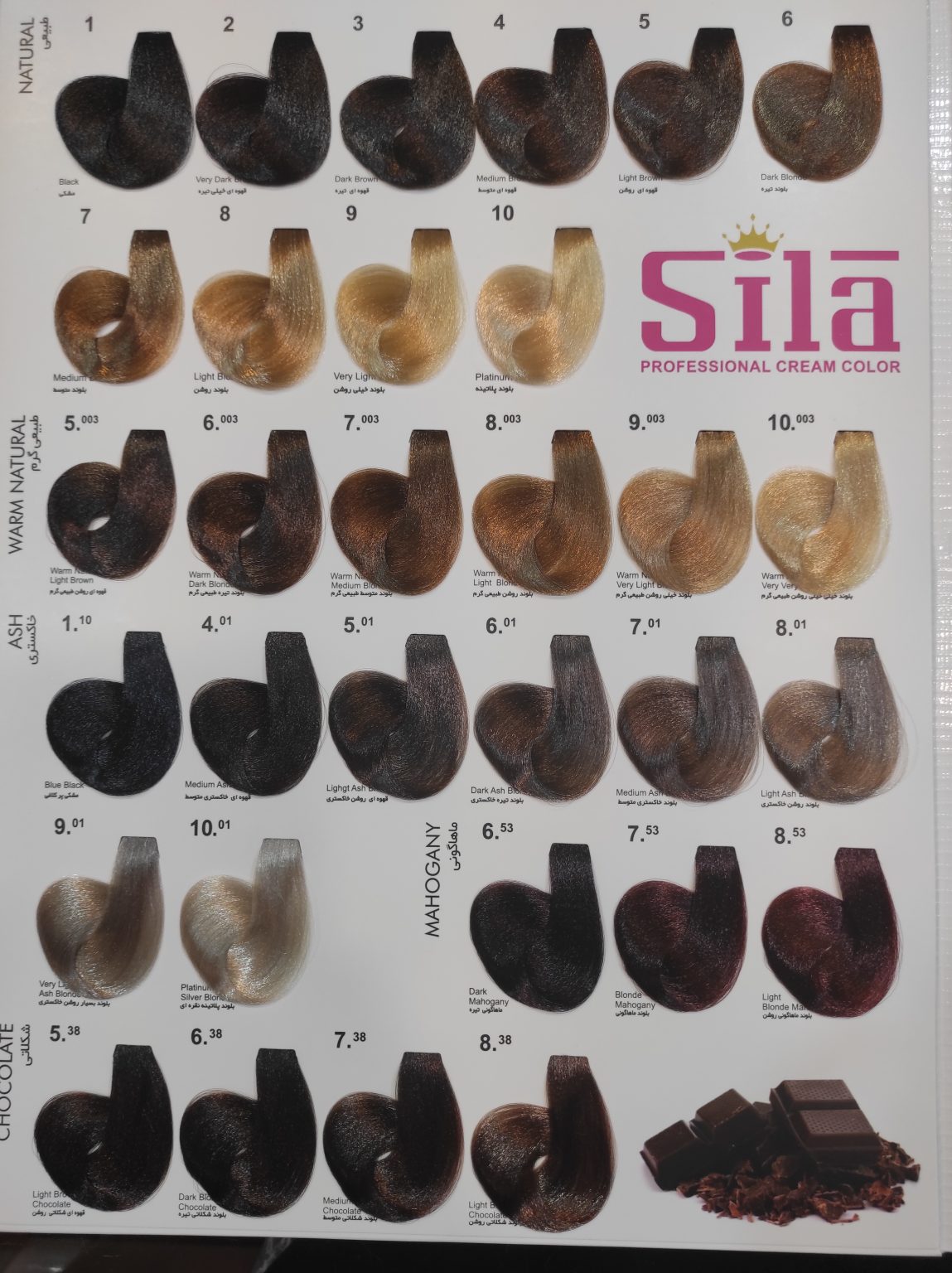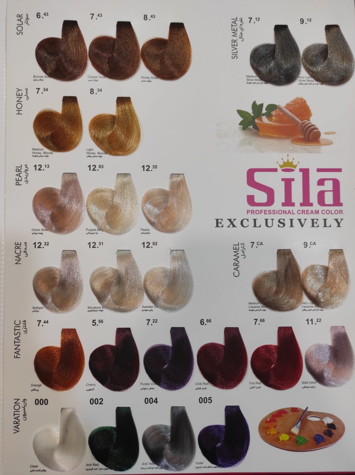 رنگ موی سیلا در طیف گستردهای از رنگها تولید شده است و مناسب برای انواع مو و سلیقههاست از رنگهای طبیعی و گرم گرفته تا بلوندهای روشن و فانتزی