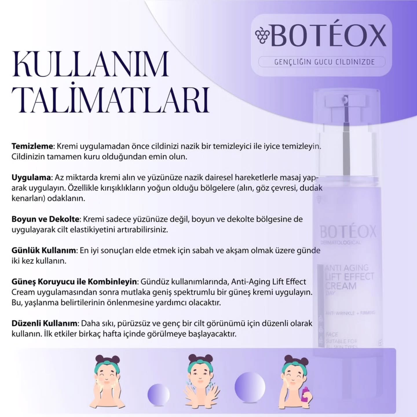 سرم بوتئوکس با داشتن بافت سبک و جذب سریع، بدون احساس چربی یا سنگینی روی پوست، فوراً جذب شده و تأثیر لیفت و سفتکنندگی محسوسی ایجاد میکند.