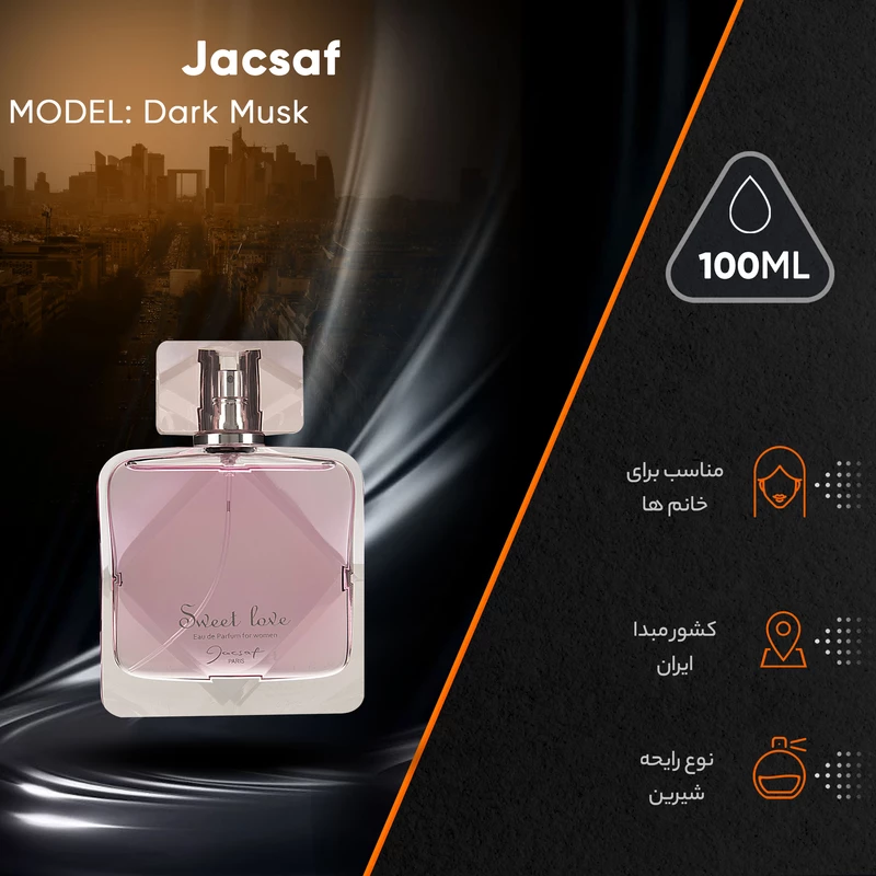 ادکلن زنانه ژک ساف مدل Sweet Love با رایحهای شیرین، گرم و احساسی، ترکیبی از ظرافت زنانه و ماندگاری بالا را ارائه میدهد. خرید اورجینال از مدا گالری.